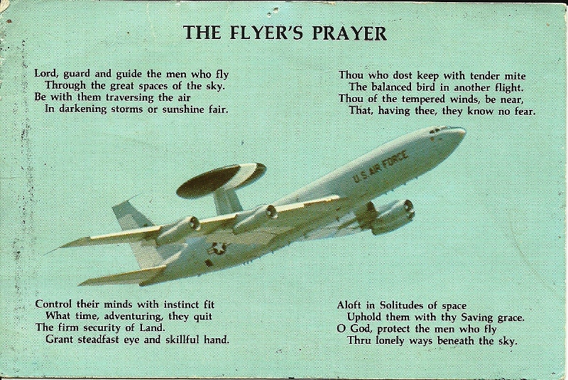 These pictures are Jeff Ringold in his first tour in Saudi for Desert Shield/Desert Storm and Southern Watch (deployment was from August 10th 1990 to May 25th 1991). The picture on the right was on the night it started. Jeff carried the prayer everytime he flew, you would too if you were sitting on top of 25K gallons of JP4 fuel, and the main circuit panel behind ya, and on chutes.